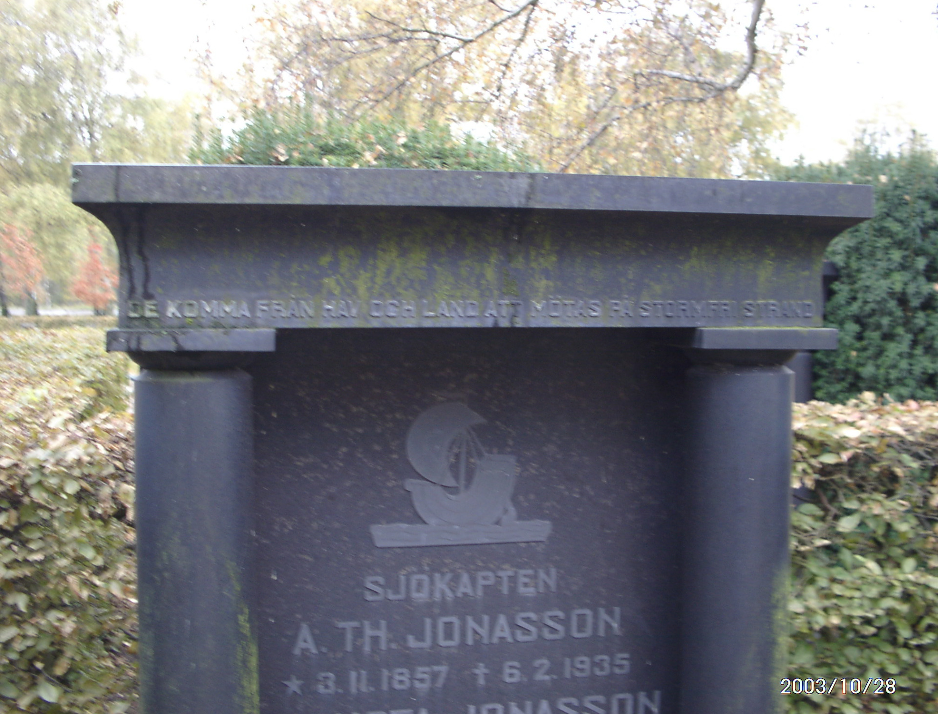 Denna bild är tagen på Råå kyrkogård, och det är ATh jonassons familjegrav.