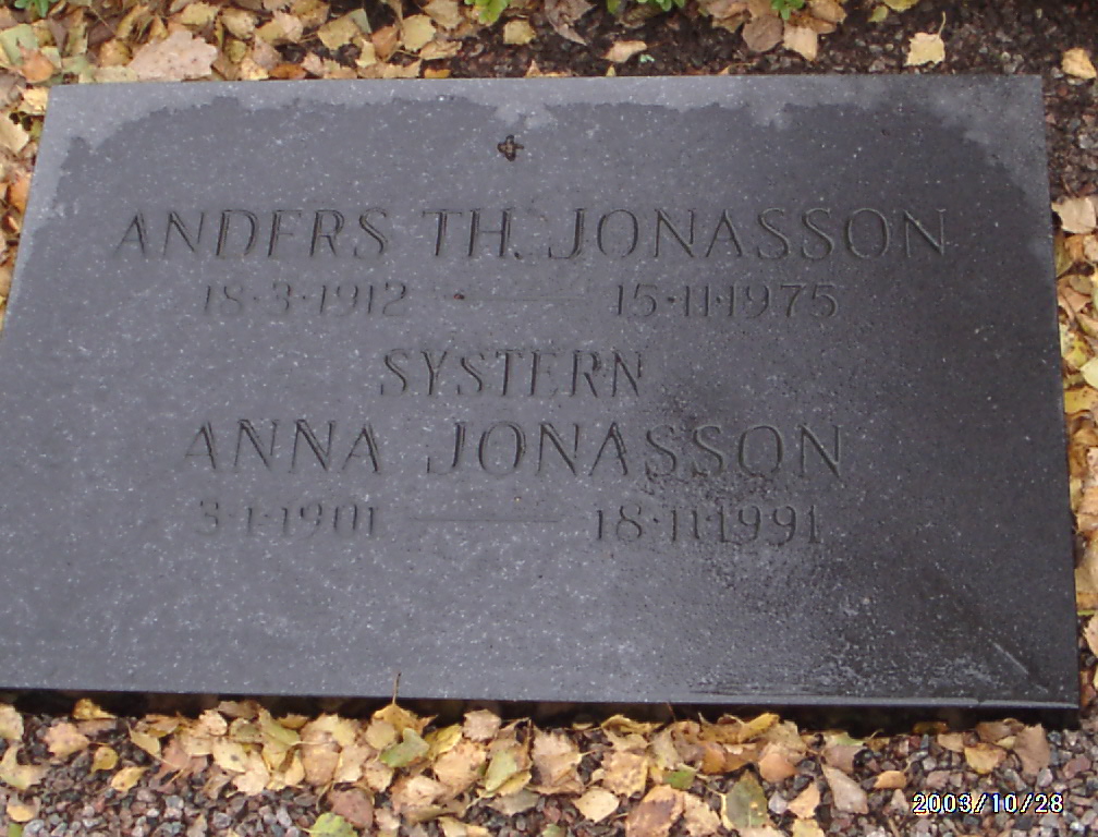 Under den lilla stenen framför ligger även barnen Theodor och Anna Jonasson