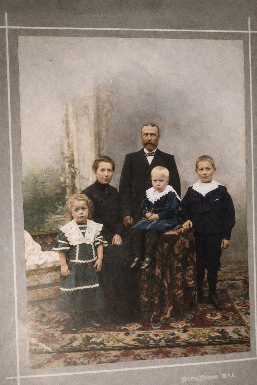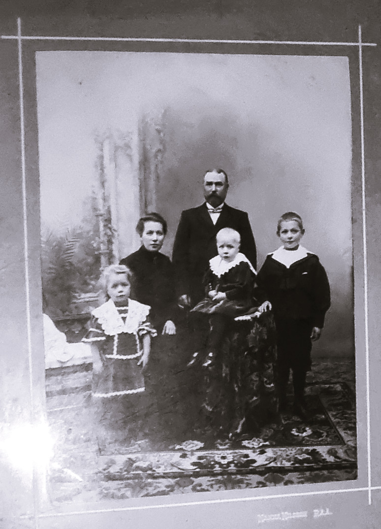 Fotot taget runt 1920 och A, Th Jonasson bör vara runt de 60, hans maka Augusta, Othalia runt de 50. Längst till höger står MauritzJonasson Troligen är bilden tagen i Aalborg i samband med att