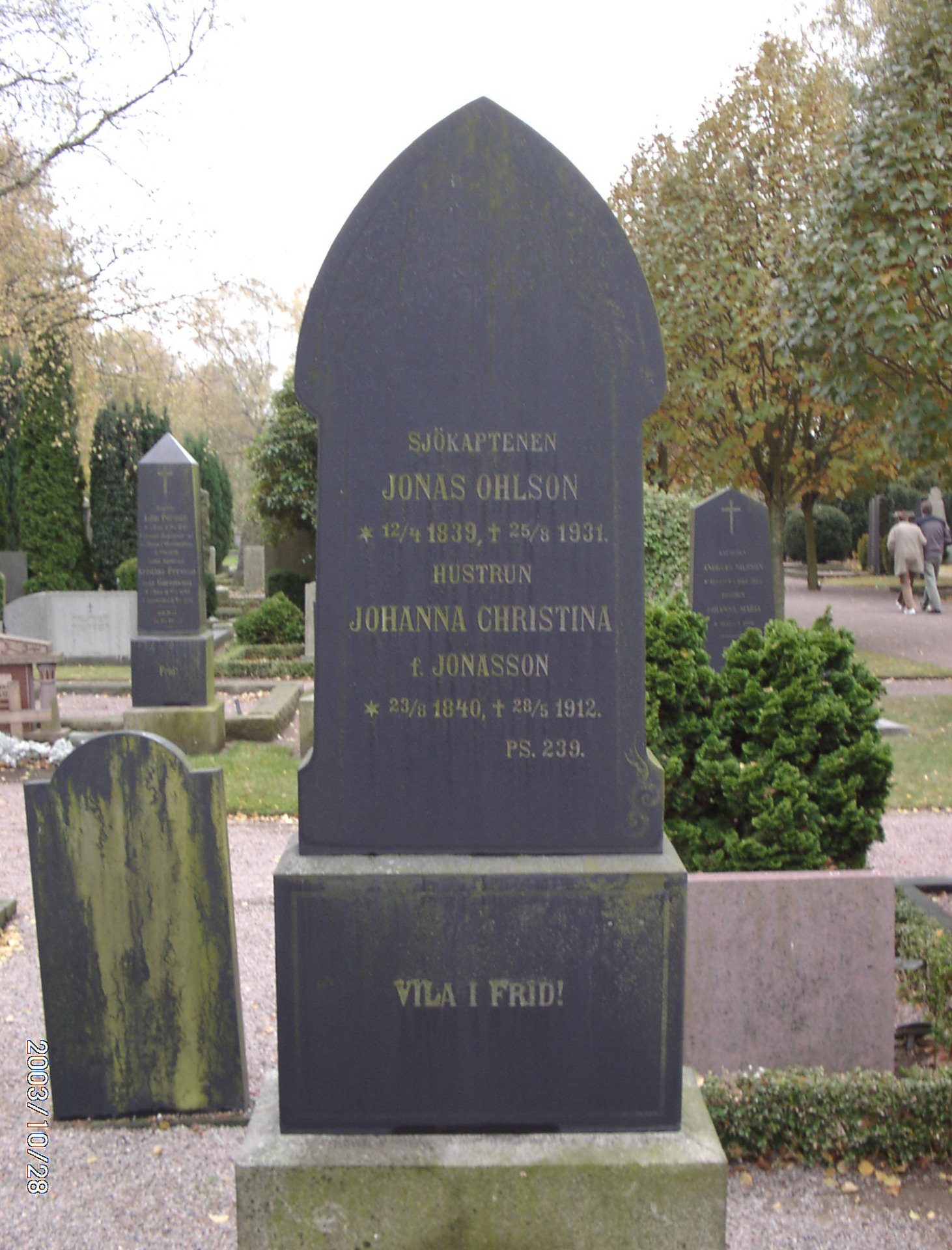 Gravplatsen på Råå kyrkogård, där även makan Johanna Christina född Jonasson ligger