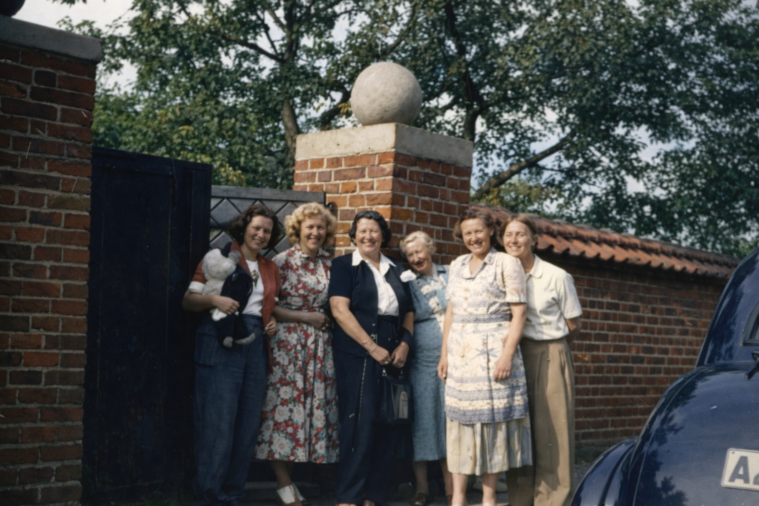 Utanför porten på Tegnersgatan någon gång sent 40 tal tidigt 1950 tal