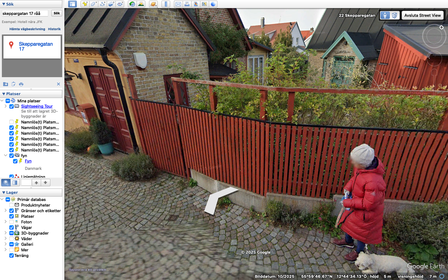 Det roliga med denna skärmdump är att det är moster Gun som är ute och går med sin hund Ludde. 2025 På bilden (från Googel earth )kan man se lite av "Lillahus " inne på gården. På brevlådan utanför är det ett foto av Jonas Olsson med familj
