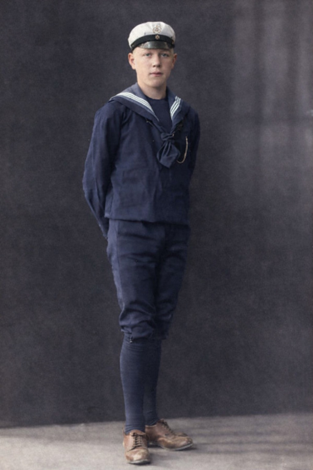 På detta fotot som föreställer Alf iklädd sjömanskostym, verkar det vara så att han gått ut någon form av skola