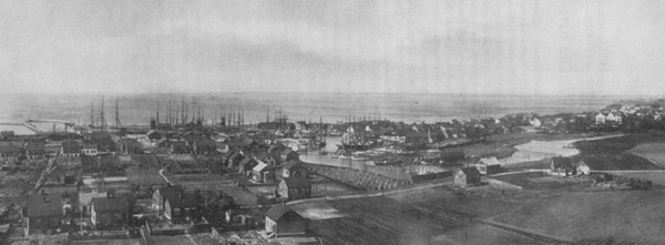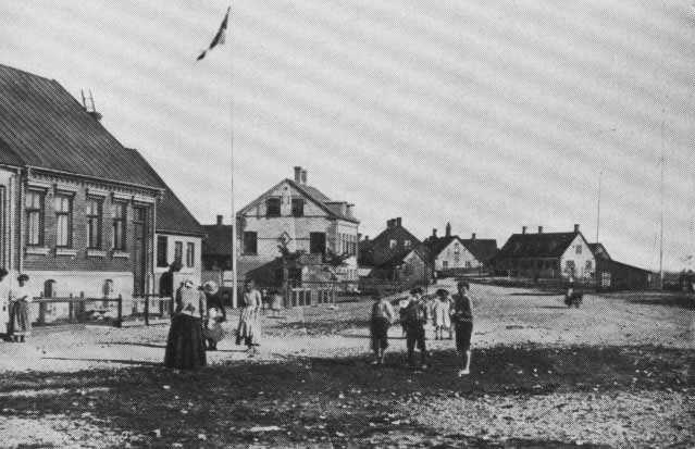 Precis bakom flaggstången ligger Skepparegatan och längt upp i den gatan nr 17 bodde J Olsson Alfs morfar