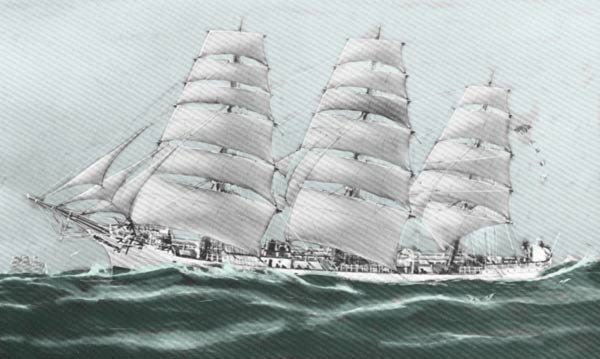 Transocean precis lossad , rostig efter en resa från Australien 1919. Bild från boken Berömda skepp av J Davidsson
