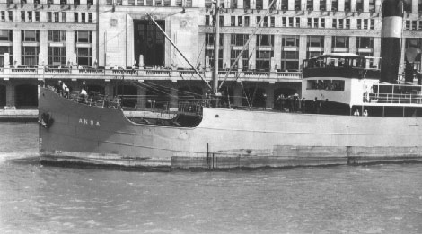 Ångaren Anna av Råå den första båt att någonsin gå direkt till USA ( Chicago) från Sverige. 1931 Alf var kapten ombord. (Anna tillhörde A,Th Jonassons rederi/er privat foto )